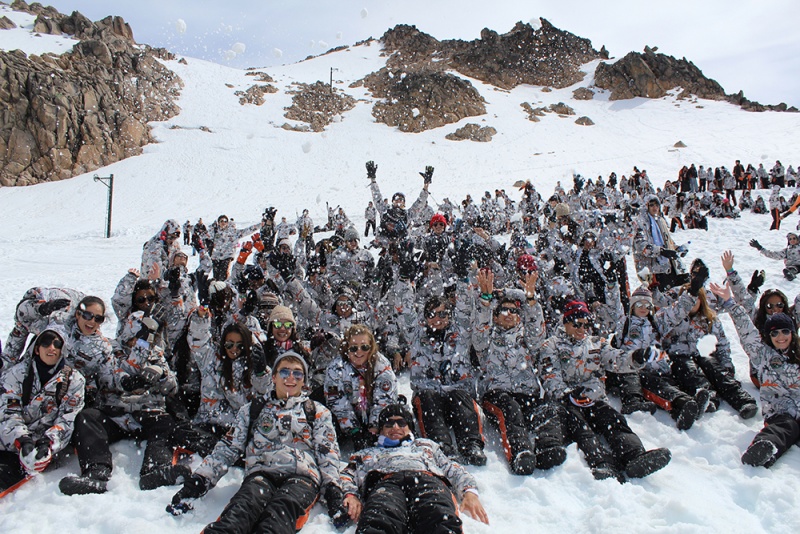 Large groups of Argentinian students roam Bariloche and the mountain on their right-of-passage bing-drinking trip upon graduation