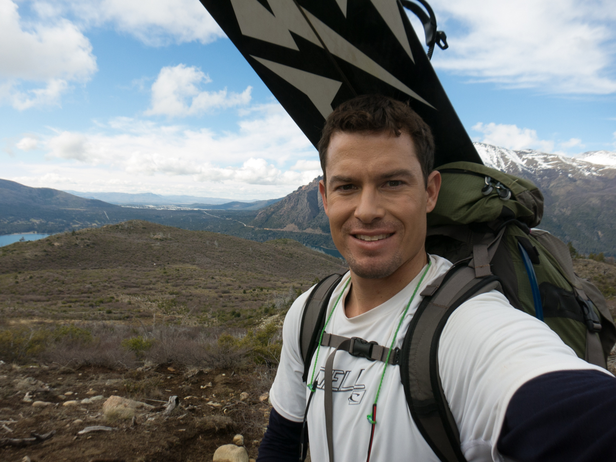 Dumb selfie, with my board cockeyed behind me. With only one bungee cord to hold the board, it was kind of all over the place