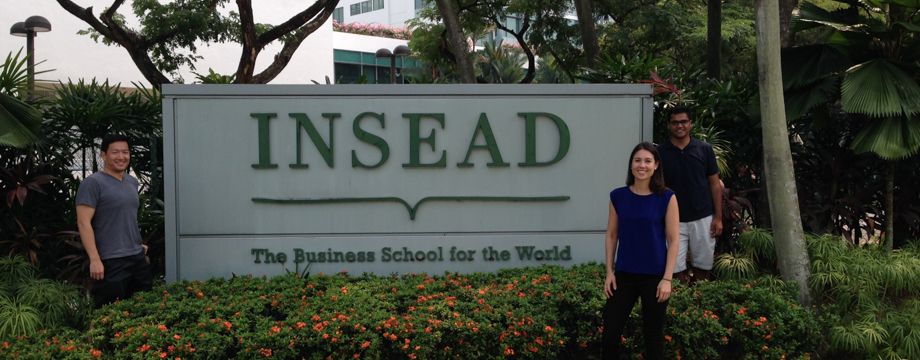 In front of the INSEAD Singapore campus marquee with Bryan and Mudit
