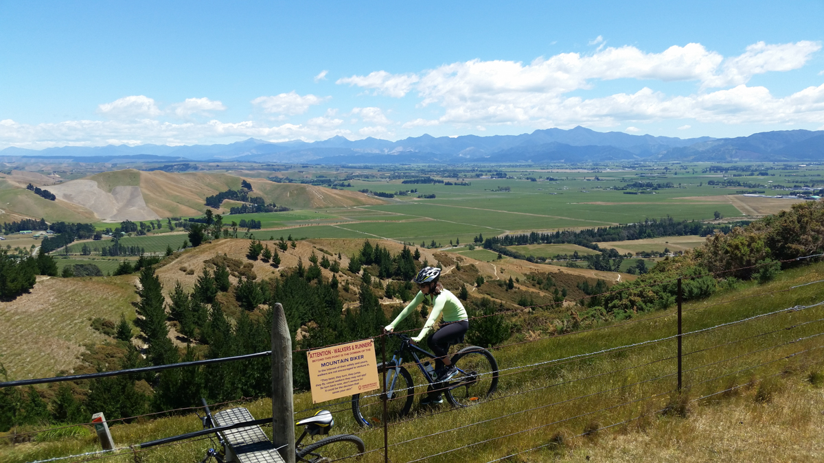 Donna riding at the top of the Blenheim Mountain Bike Park.