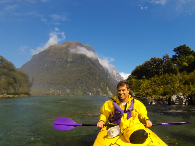 We steered the kayak up close to a waterfall; you can see the amazingly clear fresh water and I was getting really sprayed