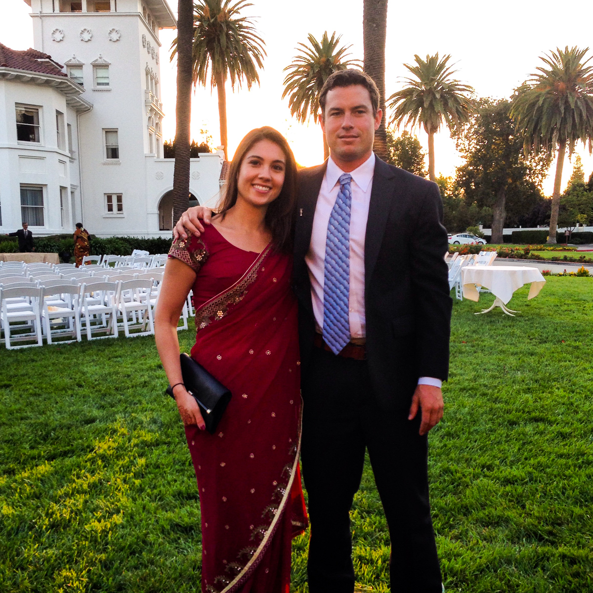 Brandon and me before the Hindu wedding ceremony. I’m in my first sari!