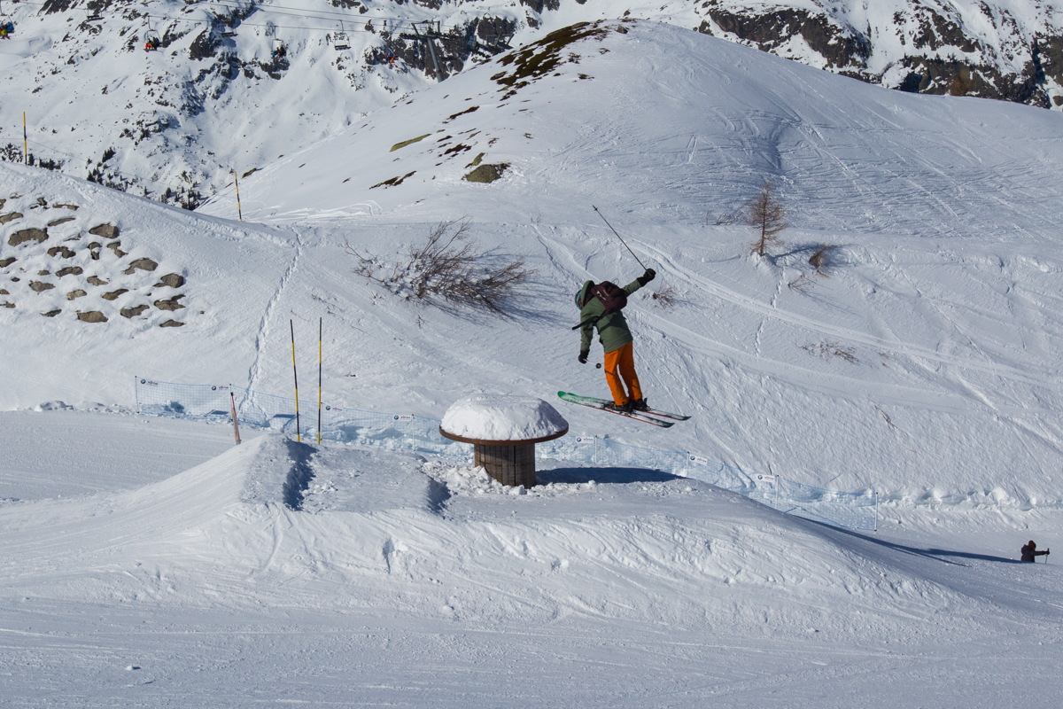 Axle jumping over an obstacle, tapping his skis on the way down, and landing backwards. He could ski backwards (switch) better than most could ski normal.